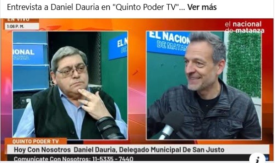 En la última edición de “Quinto Poder TV” entrevistamos a Daniel Dauria, Delegado Municipal de San Justo y candidato a Concejal en la lista del oficialismo matancero.