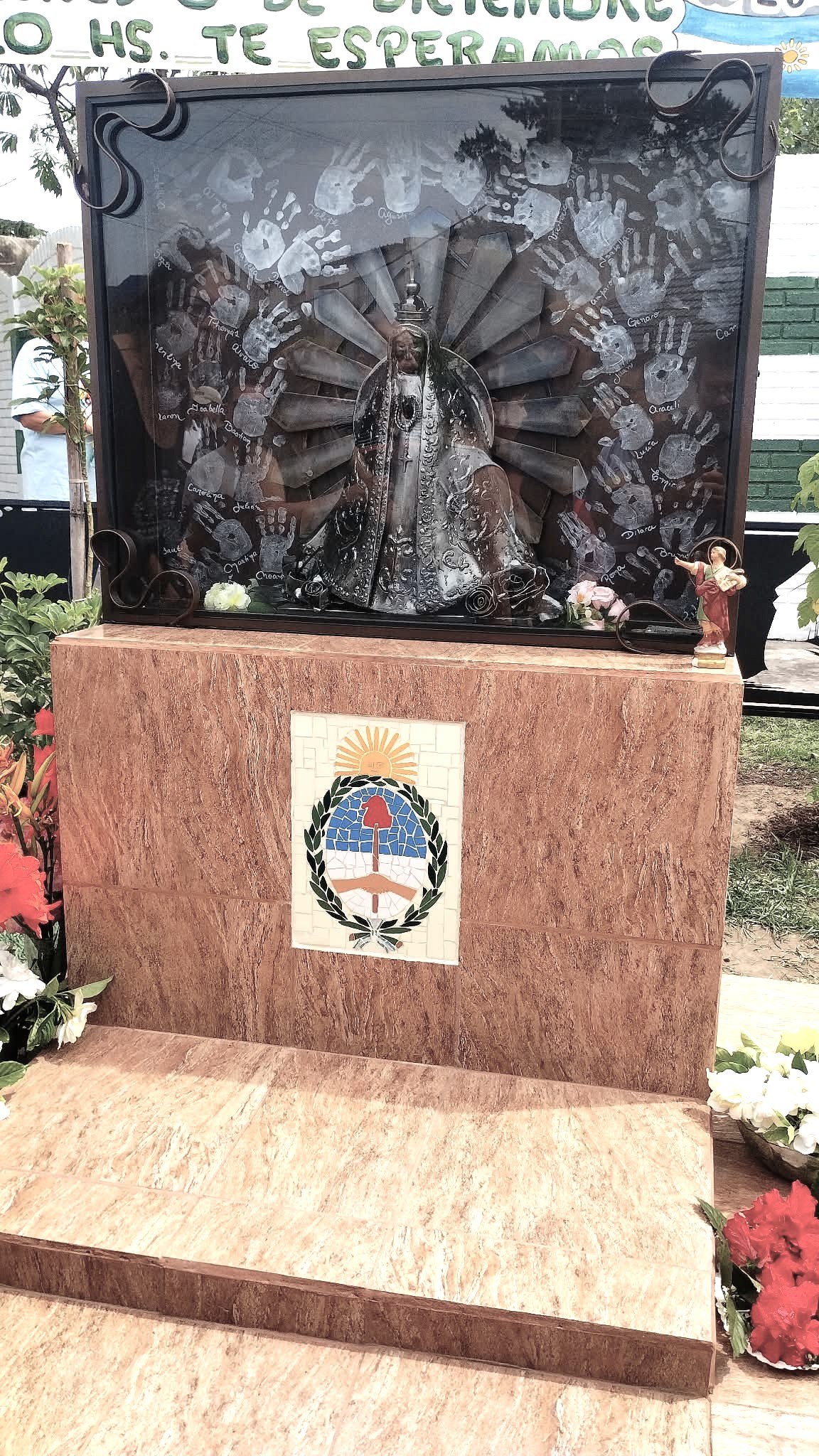 L.F.: “Seguramente muchos no lo saben, en ese mismo lugar ya existía desde hace mucho tiempo un altar con la imagen de la Virgen, que sufrió 2 veces un derrumbe por accidentes de autos, el ultimo un auto subió a la vereda y destrozo todo, una vecina rescato la imagen y la llevo al obispado donde está ahora, y esa esquina quedo abandonada y un poco descuidada, donde muchos acopiaban basura, y eso era una imagen deprimente para el barrio, y ahí nació esta idea de realizar la escultura, hasta que empezamos a caminar con el proyecto y lo pusimos en marcha y no paramos, no tuvimos nunca un no, todo era si, que bueno denle para adelante, y así lo hicimos, y este último 8 de diciembre hicimos un pequeño acto de presentación de nuestra Virgen de Luján, con la presencia de todos los vecinos, los representantes de la iglesia, las autoridades de la delegación municipal, que nos apoyaron desde el primer momento, de mi parte solo puedo agradecer ser parte de esto, y agradecer a todos los que colaboraron de alguna u otra manera”