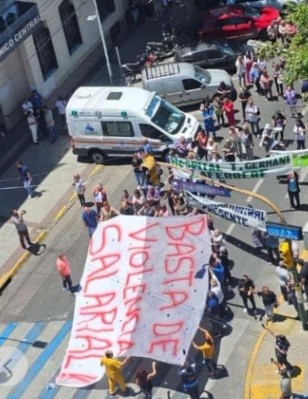 La movida comenzó en la Tesorería municipal y luego se fue extendiendo al sector de la salud. Varios hospitales municipales se fueron sumando a la protesta. Obviamente la mayor visualización del reclamo se dio en el Policlínico de San Justo, que se encuentra en la misma cuadra del Palacio municipal.