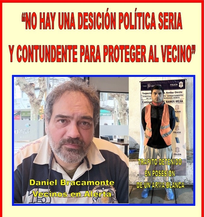 En una de las últimas notas que hicimos comentamos el caso de Daniel Bracamonte, uno de los coordinadores del sitio web, Vecinos en Alerta, quien fue “patoteado por trapitos” en plena Av. de Mayo, en Ramos Mejía. Hasta lo amedrentaron con un “arma blanca”. Obviamente Bracamonte realizó la denuncia policial pertinente, la policía detuvo a uno de los agresores, pero los elementos probatorios nunca aparecieron (el arma blanca fue secuestrada y la filmación de las cámaras de seguridad) en el expediente judicial. El único detenido fue puesto inmediatamente en libertad y sigue siendo “el trapito con más manejo” en el centro ramense.